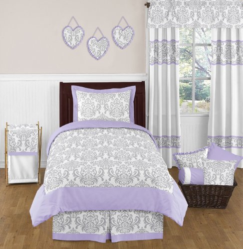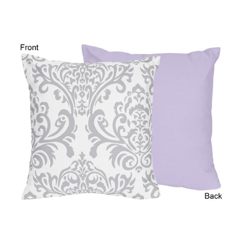 Sweet Jojo Designs Lavender, Gray and White Damask Print Elizabeth Decorative Accent Throw Pillow for a Girl Bedding