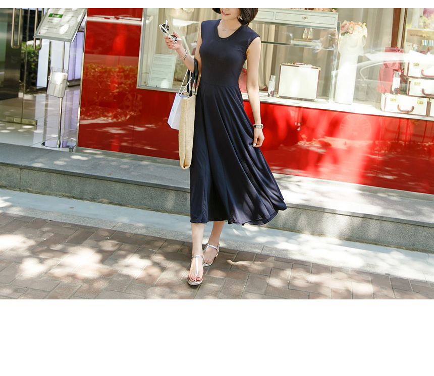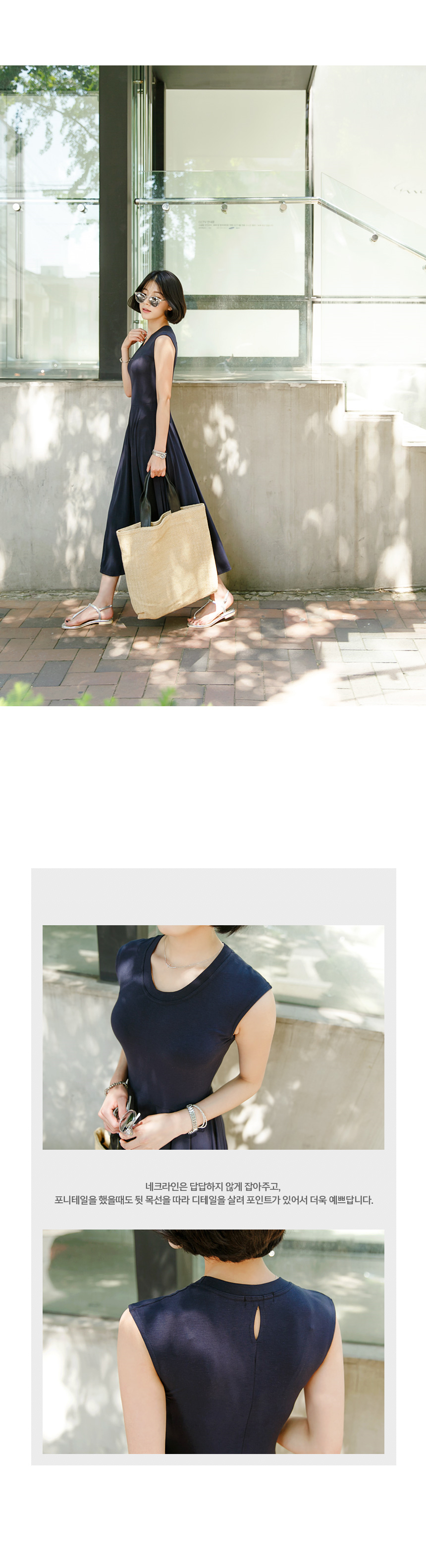 찰랑거리는 느낌의 크게 퍼지는라인이 예쁜 롱 원피스쫀쫀한 소재로 답답하지 않게 상의는 잡아주고,크게 퍼지는 A라인이 체형커버에도 좋아요.색상은 그레이, 네이비, 블랙세 가지 컬러사이즈는 FREE(55~66), L(77) 착용 가능하답니다.