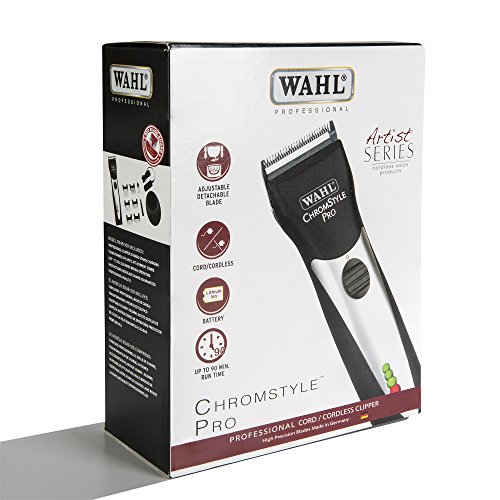 -. Feature : PROFESSIONAL PRECISION: From Wahl Professionals commercial grade line of products, the Chromstyle Pro Clipper is intended for professional use only and is designed to deliver the sharp performance that experts demand. / STYLISH AND FUNCTIONAL: The Chromstyle Pro is lightweight yet powerful. It comes equipped with an adjustable and detachable German-made blade and includes a built-in taper lever for clean and effortless fading. This clipper also includes a premium charging stand for easy storage and can be used with its cord if necessary. / ACCESSORIES INCLUDED: For your convenience, the Chromstyle Pro Clipper comes with all accessories required for use including charge stand, charging transformer, 6 plastic attachment combs, oil, cleaning brush, operating instructions, and red blade guard. / PRODUCT SPECIFICATIONS: The Chromstyle Pro Clipper (8548-100) measures 7 inch long and weighs 11 oz. This product features a German-made detachable 41884-7140 blade, and Lithium Ion battery, that has a 90-minute run time. / PLEASE NOTE: Wahl Professional Products purchased from this authorized dealer feature a manufacturers warranty, which is not available from unauthorized dealers. For sale and use in the U.S.A. only.