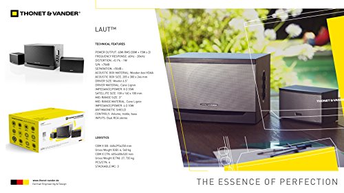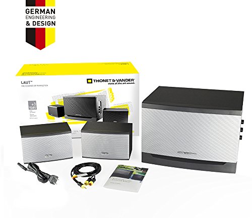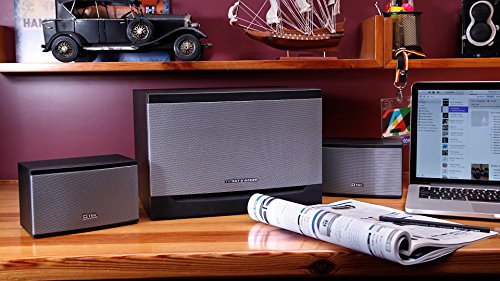 honet and Vander Laut 2.1 multimedia speakers offer a powerful sound from a compact speaker system. 300 Watts of peak power result from the innovative technology and design never before seen in a speaker system. The central speaker includes a powerful 6.5-inch woofer, and each satellite has a 3-inch mid-range. A HOWL BASS and WIDER FX technology creates an intense surround sound listening experience from the compact laut speakers