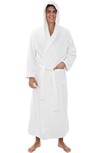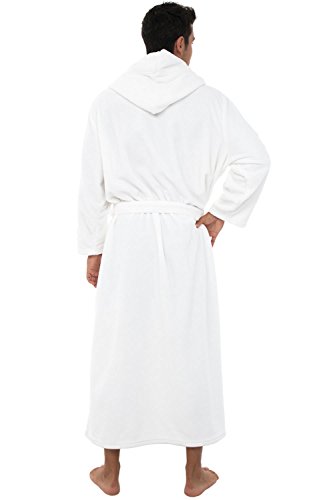 Alexander Del Rossa Mens Fleece Robe, Long Hooded Bathrobe, Small Medium White (A0125WHTMD)