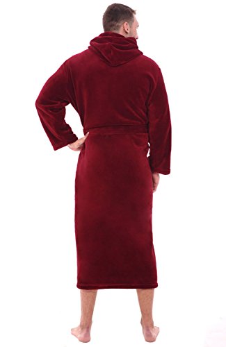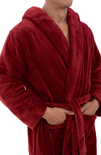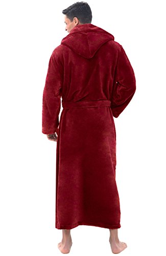 Alexander Del Rossa Mens Fleece Robe, Long Hooded Bathrobe, 3XL 4XL Burgundy (A0125BRG4X)