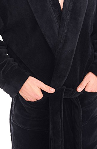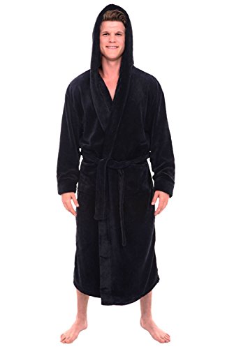 Alexander Del Rossa Mens Fleece Robe, Long Hooded Bathrobe, Small Medium Black (A0125BLKMD)