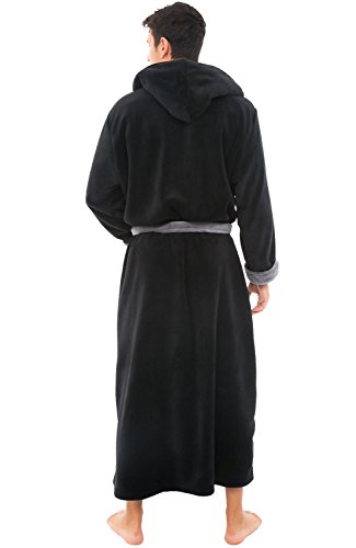 Del Rossa Mens Fleece Robe, Long Hooded Bathrobe, Large XL Black (A0125BLKXL)
