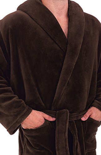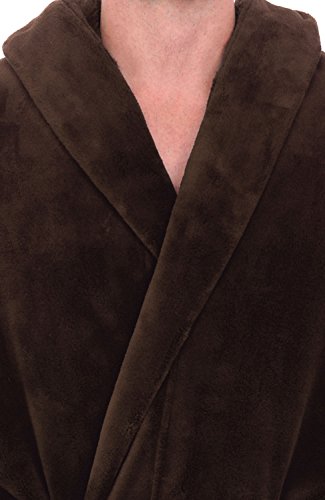 Del Rossa Mens Fleece Robe, Long Hooded Bathrobe, Large XL Chestnut Brown (A0125CNTXL)