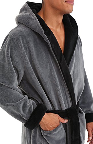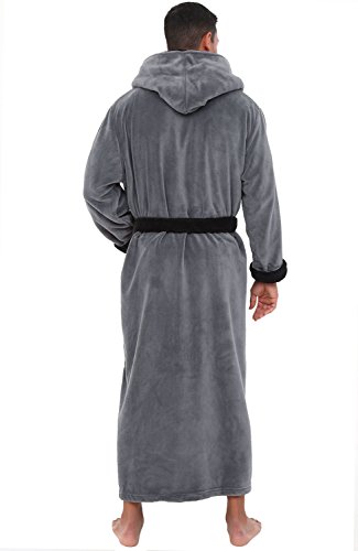 Del Rossa Mens Fleece Robe, Long Hooded Bathrobe, Large XL Steel Grey (A0125STLXL)