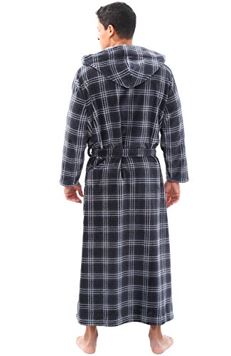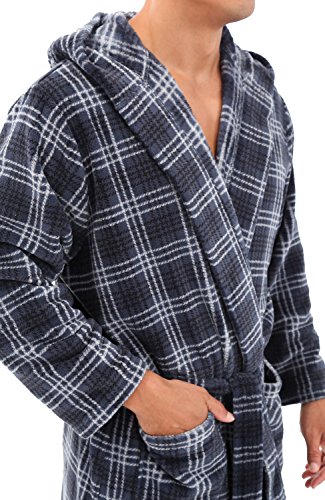 Alexander Del Rossa Mens Fleece Robe, Long Hooded Bathrobe, Small Medium Grey Plaid (A0125R40MD)