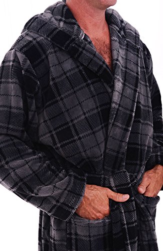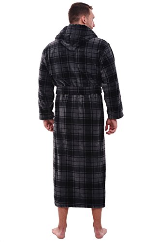 Del Rossa Mens Fleece Robe, Long Hooded Bathrobe, Large XL Grey Plaid (A0125R40XL)