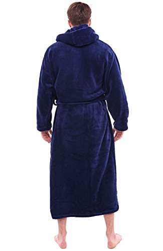 Alexander Del Rossa Mens Fleece Robe, Long Hooded Bathrobe, 3XL 4XL Navy Blue (A0125NBL4X)