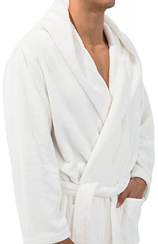 Del Rossa Mens Fleece Robe, Long Hooded Bathrobe, Large XL White (A0125WHTXL)