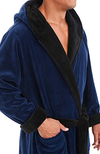 Del Rossa Mens Fleece Robe, Long Hooded Bathrobe, Large XL Navy Blue (A0125NBLXL)