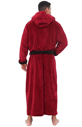 Del Rossa Mens Fleece Robe, Long Hooded Bathrobe, 1XL 2XL Burgundy (A0125BRG2X)