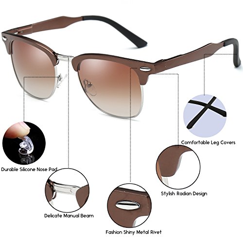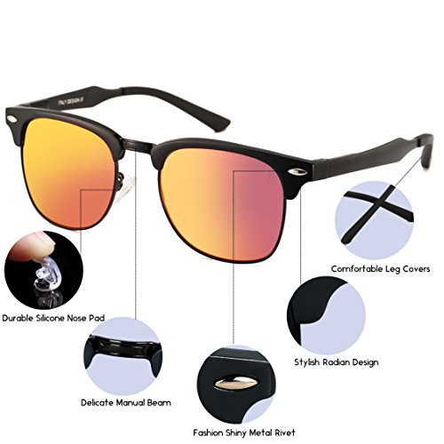 | Dollger Clubmaster Polarized Wayfarer Sunglasses Horn Rimmed Half Frame |