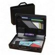 -. Feature : Made of durable ABS hardside shells / Combination lock for security / Multiple organization compartments for documents, small electronics and other business essentials / Patented hinge opens partially when uP.R.Ight or fully when laid flat