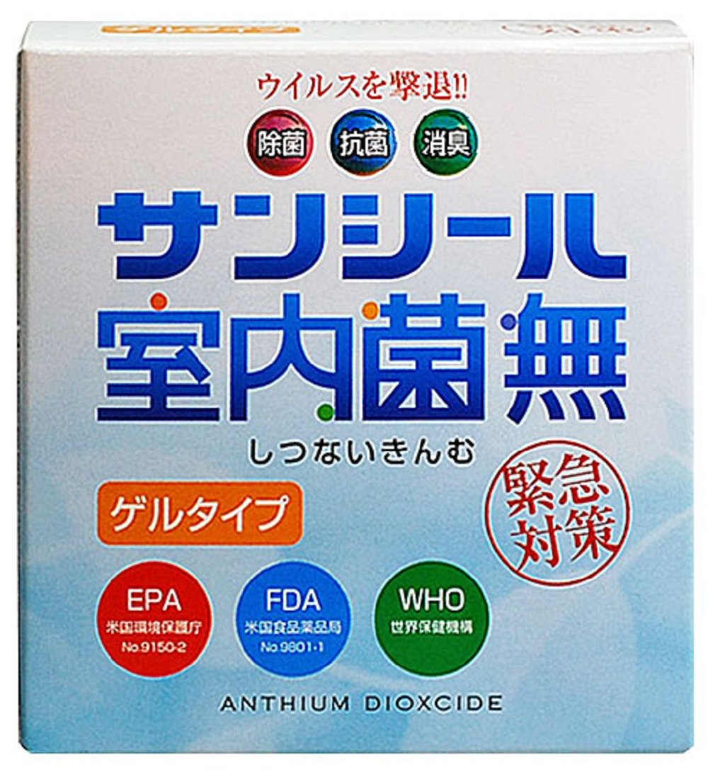 It is recommended for disinfection and deodorization of the inside of a closed cabinet such as a room (about 3 tatami mats), toilets, shoe boxes, refrigerators, cars, etc. by placing one 120 g of indoor fungus-free gel.