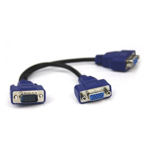 -. Feature : SVGA HD15 Y Splitter Cable / Connector: 1 Male to 2 Female SVGA Connectors / Cable length: 12inch / SVGA Y Splitter Cable provides an inexpensive alternative for splitting the video signal from your PC's VGA port to two monitors (up to 800 x 600) that use standard 15-pin plugs / Measuring 12 inches in length, this cable is best suited for short distance applications, such as in presentations when a laptop display is screened onto two larger monitors
