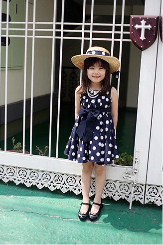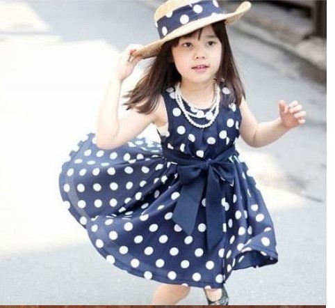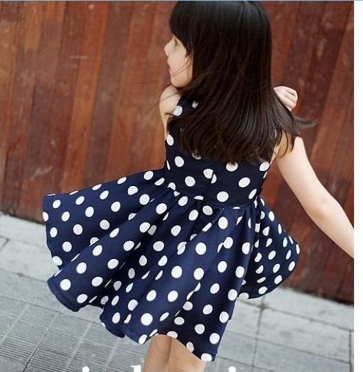 Summer Sleeveless Dress - Navy Blue Polka Dots