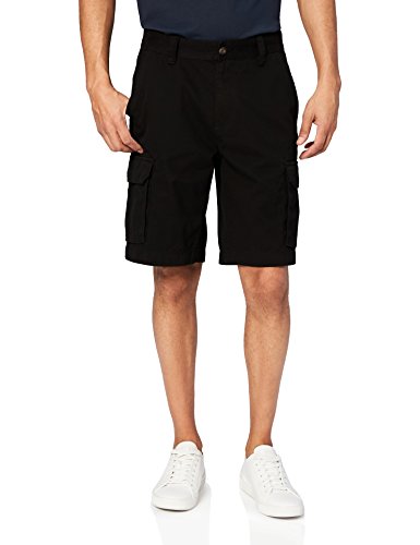 -. Feature : An Amazon brand / Featuring multiple pockets and a comfortable fit, this classic cargo short is a great everyday essential item / Relaxed-fit shorts with button-flap pockets at seat, slide slant pockets, and cargo side pockets / Sits naturally at waist; hits just below the knee with a 10" inseam / Put to the test to ensure quality, fit, and comfort / Model is 6'2" and wearing a size 32