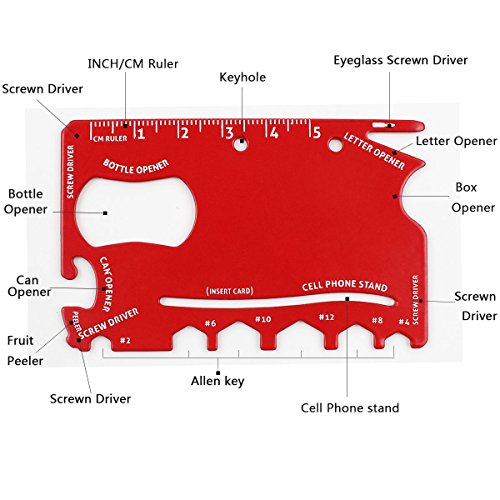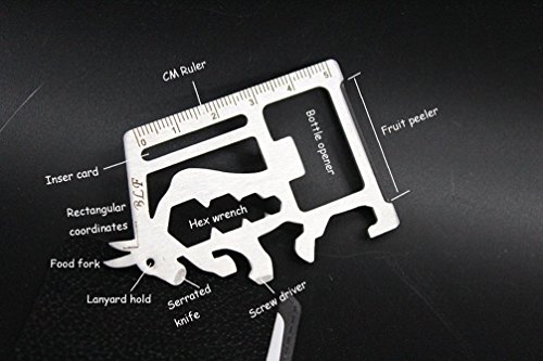 -. Feature : PERFECT Size - Card size - Great size to fit in your wallet or pocket - Easy to carry anywhere. / SUPERB Quality - Made from stainless steel - Superb quality engineering guarantees years of reliable performance. / EXTREMELY Versatile - 18 in 1 multifunction tool - From Measuring Tool to Survival Pocket Multitool. Perfect for repairmen, mechanics, carpenters, hobbyists, boat owners, campers. / Makes a Cool Gift- Nobody gets excited about receiving even a pretty pocket tool - Best gift for Birthday, Graduation, Anniversary, Valentines day, Christmas, Fathers day, for him or her gift idea. / USE Broadly - Pocket tool is a must have for any situation - Whether you are into camping,hunting,crafting, farming, construction, landscaping, roofing, survival situations, Durable for any situation, including military.