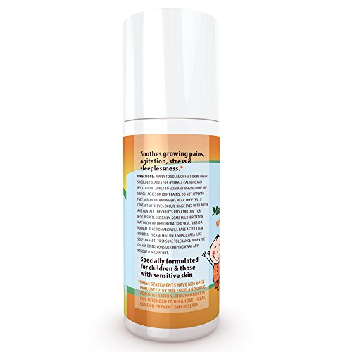- Feature : Only Magnesium Oil specifically formulated for kids. Most Magnesium Oil will irritate gentle skin. / Unique formula combining Magnesium Oil and Aloe Vera for maximal effectiveness. / Custom Roll-On Applicator for easy application on squirmy kids. / Can be used to help calm nervous, anxious, or hyper kids. Also great for sleep and headaches.* / Doesn't work for you? We offer a 100% money back guarantee.
