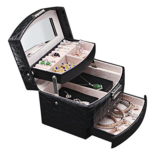 - ASSURED QUALITY: made of quality black faux leather and soft beige velvet, this jewelry box is superexcellent to protect your beloved jewelry from scratch and damage.