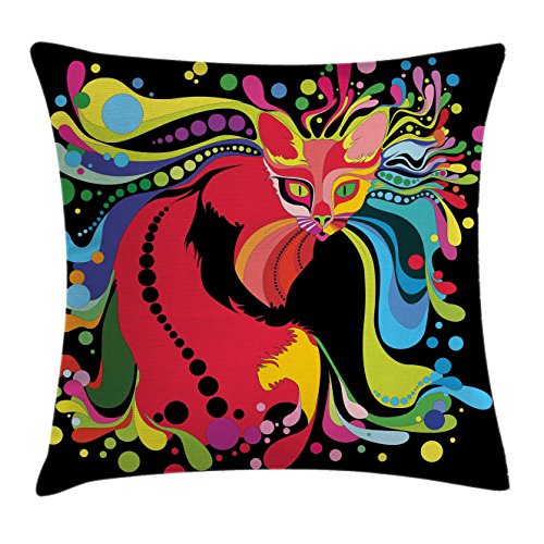(Ambesonne)/Bedding Bath/Bedding/DIRECT FROM USA/Psychedelic Throw Pillow Cushion Cover by Ambesonne, Futuristic Kitty Visual Print Fluid Swirli...