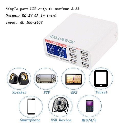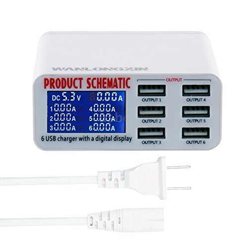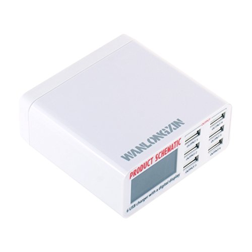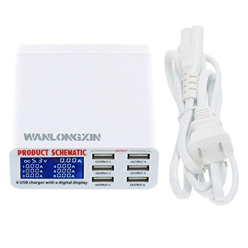 WANLONGXIN 899 USB Charger Portable Multi USB Port Rapid Charger 6 Port USB Socket Fast Charger with LCD Display and Auto Detect Technology for Iphone Samsung Cell Phones and Tablets