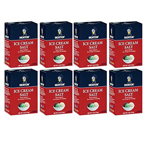 8 boxes of Morton Salt used for Ice Cream, and/or melting ice and Snow. Morton Ice Cream Salt can be mixed with ice for freezing delicious homemade desserts to rival any ice cream shop.Rich, homemade ice cream is as easy as mixing ingredients together and pouring into an ice cream maker lined with Morton Ice Cream Salt. For over 160 years, Morton is the authority on salt.Feature