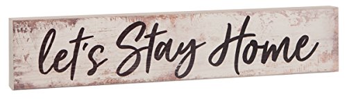 Let's Stay Home White Distressed 17 x 3.5 Inch Pine Wood Barnhouse Block Tabletop Sign