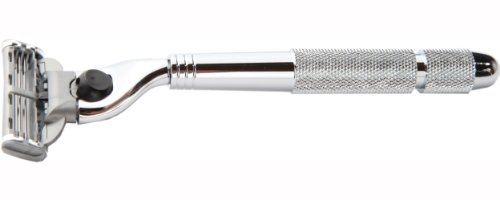 3 Piece Shaving Set With Textured Mach 3 All Metal Heavyweight Handle and 100% All Metal Textured Heavyweight Badger Brush, With All metal Chrome Classy Stand