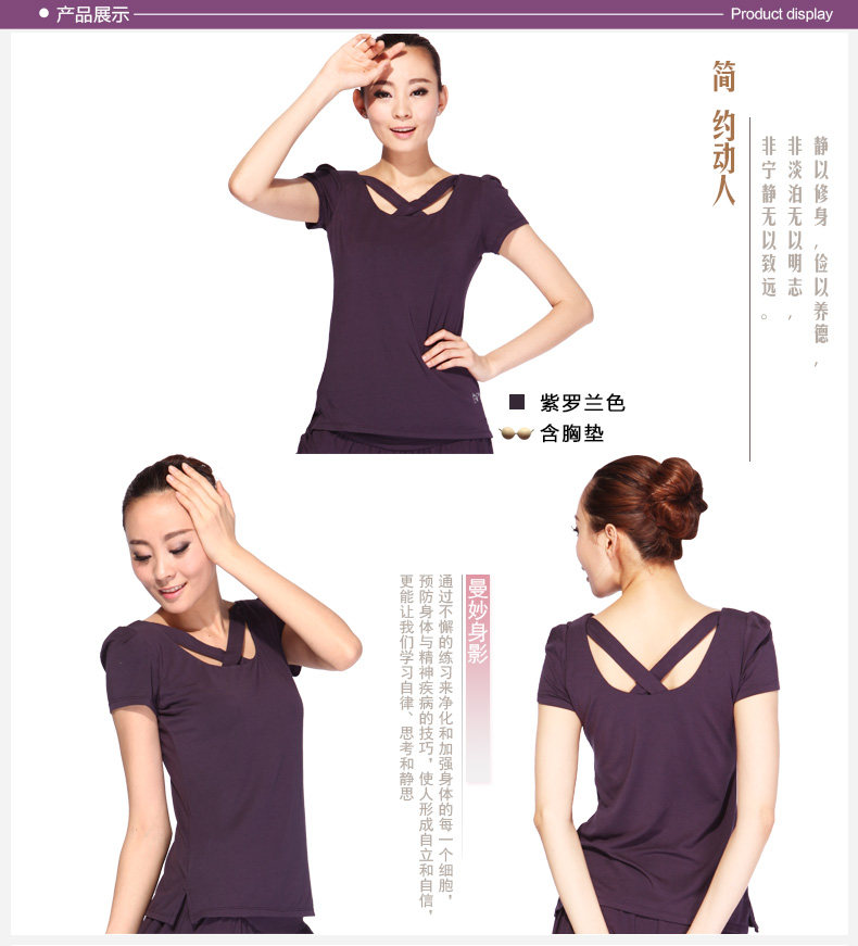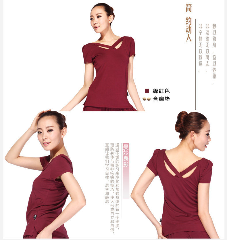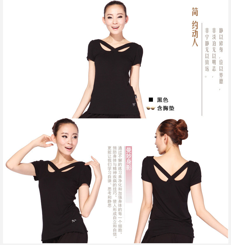 瑜伽服春夏季女健身服跳操服现代舞蹈服装上衣胸垫