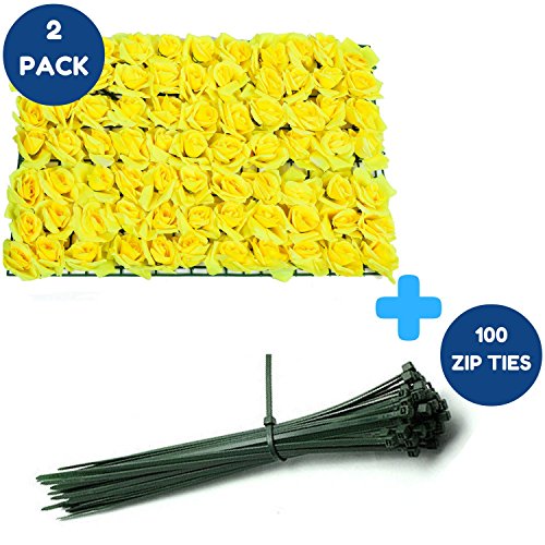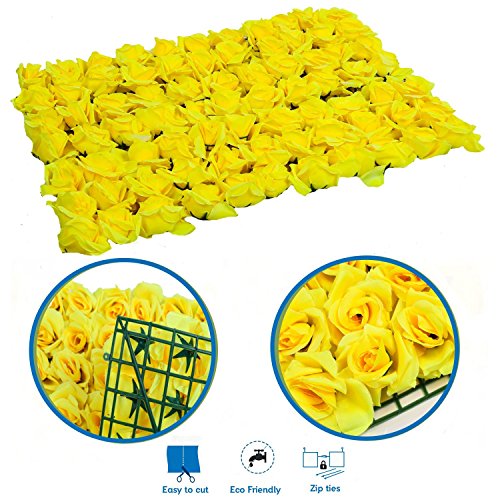 Artificial Floral Hedge Panel-Yellow Roses Flowers | 24" x 16" size | Perfect Boxwood Hedge Wall for Outdoor / Indoor Home Decor, Photography, Wedding Decorations, Flower Crafts and Garden Landscaping
