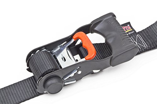 1½" x 7ft PowerTye® Mfg Made in USA Ergonomic Locking Ratchet Tie-Downs with Heavy-Duty S-Hooks, Black (pair)