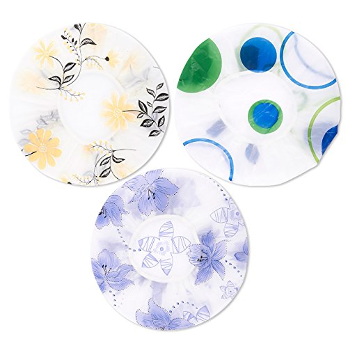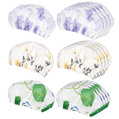 - ELASTIC SHOWER CAPS: Includes 15 reusable elastic shower caps in 3 floral themes, 5 pieces of each theme. Sewn-in elastic band provides a good fit for most head sizes.