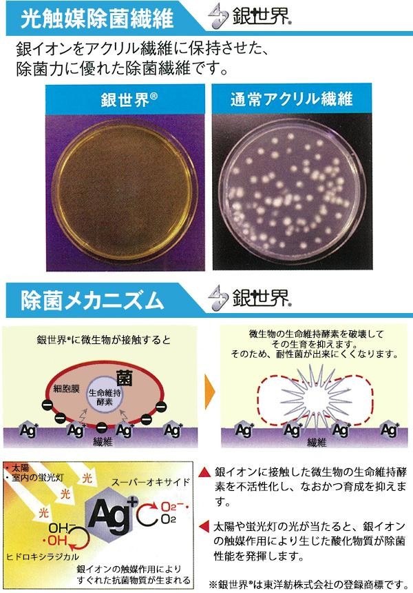 | 素材・材質 | 表面:エステル、銀世界(R)、東洋紡ディスメル(R)・承認No.JP-218H 裏面:ポリウレタン |