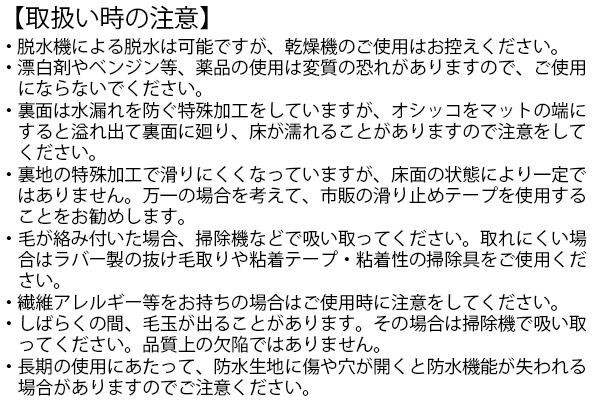 | 除菌力に優れた除菌繊維である「銀世界(R)」と、ペット臭やトイレなどのアンモニア臭を吸着し消臭する繊維である「ディスメル(R)」を使用したペット用マットです。裏面の特殊加工により、吸収した水分を床に漏らすことがありません。吸収・消臭効果は天日干しや洗濯によって回復、いつでも清潔な状態でお使いいただけます。 |