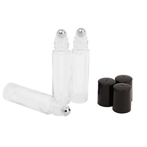 10ml Transparent Glass Roll on Bottles--Set of 6 with With Metal Ball for Essential Oil,Aromatherapy,Perfumes and Lip Balms by Mavogel,Clear Color
