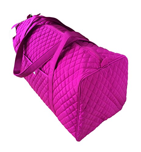 -. Brand : Vera Bradley -. Color : Magenta -. Department : womens -. EAN : 0886003283295 -. Feature : Vera Bradley Large Duffel has top zip closure with front slip pocket and silver toned engraved Vera Bradley nameplate / Dual handles with drop of approx. 15 inches / Interior features spacious open compartment / Folds flat for easy storage / Approx. Dimensions: 22 in L x 11 in H x 11.25 in W at bottom tapering to 7.75 in at top -. Model : 14527-086 -. MPN : 14527-086 -. PackageQuantity : 1 -. PartNumber : 14527-086 -. ProductGroup : Apparel -. ProductTypeName : LAGE -. Size : One Size -. Title : Vera Bradley Large Duffel in Magenta -. UPC : 886003283295