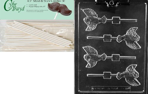 Cybrtrayd 45St50-A137 Hummingbird Lolly Animal Chocolate Candy Mold with 50 4.5-Inch Lollipop Sticks