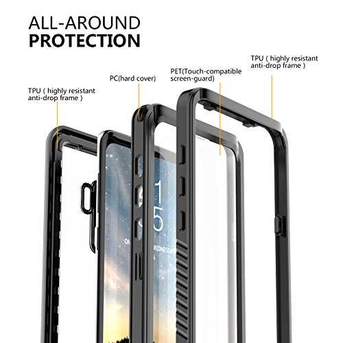 -. Feature : ✅IP68 CERTIFIED WATERPROOF CASE - Specially designed for and perfectly compatible with Samsung Galaxy S9, Fits the phone well. Waterproof protection up to a depth of 10ft (3Meters) for 3 hours and IP68 level. NOTE: please must do WATER TEST to test its waterproof function before put the case and phone into the water / ✅FULL BODY RED MILITARY PROTECTION - Two-tiered architecture protect Galaxy S9 with 360 degree dual layer shelter(Anti-scratch, Drop Protection, Shock Absorbent, Shatterproof and Water Resistent). Made of premium material(Lightweght, Durable, Ultra Slim and Environmentally Friendly), Providing superior safeguard for Samsung Galaxy S9 / ✅SCREEN-TOUCH SENSIBILITY & CLEAR SOUND QUALITY - Front cover with built-in screen protector of crystal clarity prevents scratches without compromising sensitivity which allows you to access all functions of Samsung Galaxy S9'screen. Non-permeable membranes microphone and speaker cover vents, through which clear sound can be heard and captured via your headphone / ✅SLIM THIN AND LIGHTWEIGHT - 18mm (0.7in) in thickness and weighs only 55g (1.94 oz), small and convenient enough to fit easily in your hand or in your pocket. Durable and flexible design, with easy access to all buttons and ports. Unique sliding design for easy installation and removal / ✅SIX MONTHS WARRANTY - This Samsung Galaxy S9 Case Was Under SIX MONTHS WARRANTY. We Take Quality Responsibilities of The Case and Always Try Our Best TO Promote Products, You Are Welcome To Share Your Precious Advices and Purchase Experience. Any Question! We promiss to response within 24 hours!