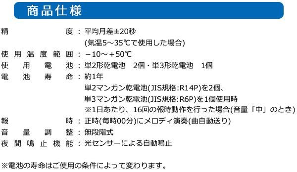| 付属品 | モニター用電池(単2形乾電池×2個・単3形乾電池×1)、木ねじ(厚い木の壁・木の柱専用)×1、取扱説明書、保証書(保証期間:1年間) |