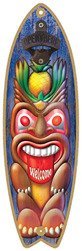 (SJT41345) Tiki Welcome Bottle Opener 5" x 16" Surfboard Plaque