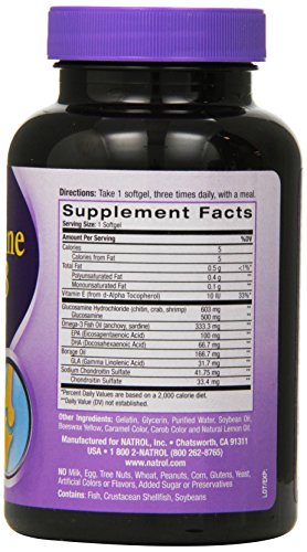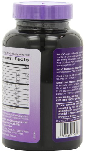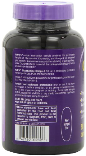 -. Binding : Health and Beauty -. Brand : Natrol -. EAN : 0047469009892 -. Feature : Glucosamine is a natural substance found in cartilage and in the covering of shellfish like crab and shrimp / Glucosamine helps regenerate and rebuild cartilage tissue / Omega-s fatty acids are integral to the body's metabolism and are needed for our bodies to work normally / Because essential fatty acids are not made in the body we need to obtain them via our diet or through supplements. / Natrol's Omega-3 contains EPA and DHA fatty acids -. Label : Natrol -. Manufacturer : Natrol -. Model : No Model Number -. MPN : 030561-5 -. NumberOfItems : 2 -. PackageQuantity : 2 -. PartNumber : 030561-5 -. ProductGroup : Health and Beauty -. ProductTypeName : HEALTH_PERSONAL_CARE -. Publisher : Natrol -. Size : 90 sgels -. Studio : Natrol -. Title : Natrol Omega-3 Glucosamine Softgels, 90-Count (Pack of 2) -. UPC : 047469009892
