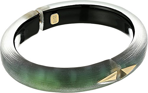 Lavish unparalleled style upon your ensemble with the Alexis Bittar™ Golden Studded Hinge Bracelet. Stackable bracelet. Hand crafted lucite. 10K gold-plated metal. Multicolor crystal accents. Hinge closure. Imported. This item may ship with an attached security tag. Merchandise returned without the original security tag attached or a damaged tag may not qualify for a refund. Measurements: Width: 3⁄5 in Diameter/Length: 2 2⁄5 in Weight: 0.8 ozFeature