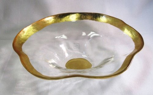 Badash 8" Round Gold Tone Wave Handmade Glass Bowl, 8"