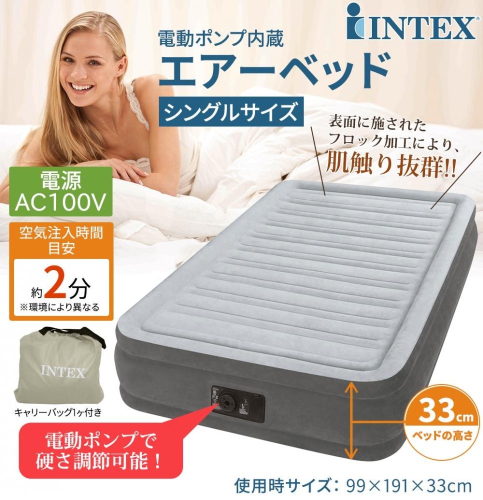 | お好みの硬さに調整可能。電動ポンプ内蔵エアーベッド。 |