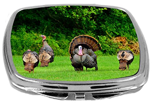 Rikki Knight Wild Turkeys in Field Design Compact Mirror, 17 Ounce