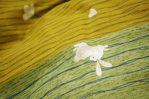 明るいうさぎ柄のファスナー付きコタツ掛けカバーです。洗濯機で洗えるので清潔にご使用できます。