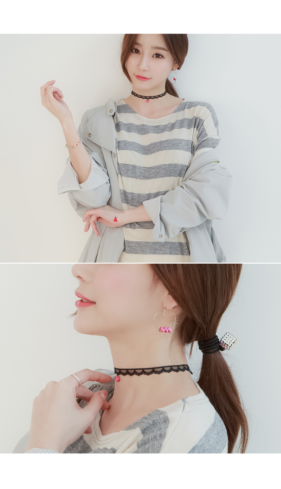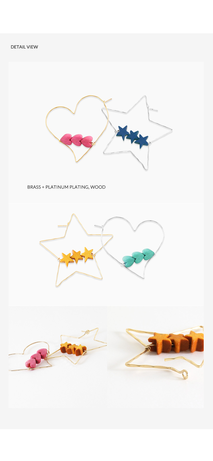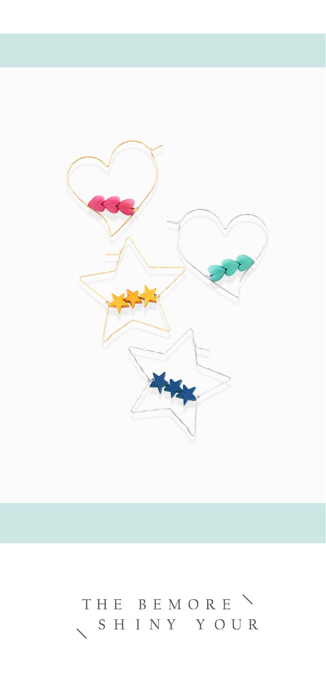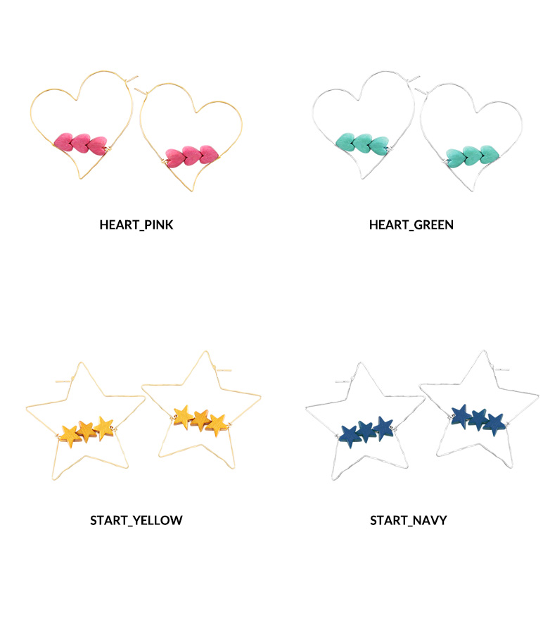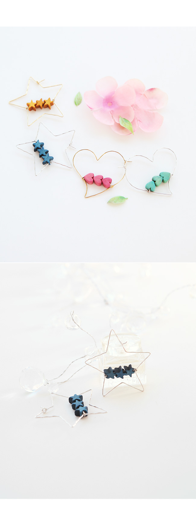 슬림한 링에 하트와 별이 콩콩콩 귀엽게 장식된 링 타입의 이어링입니다.