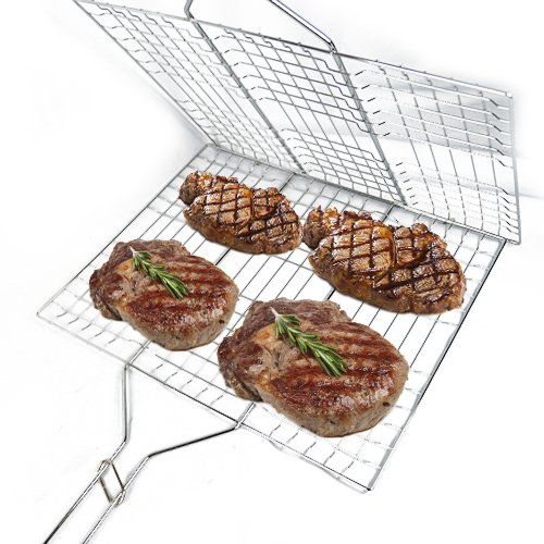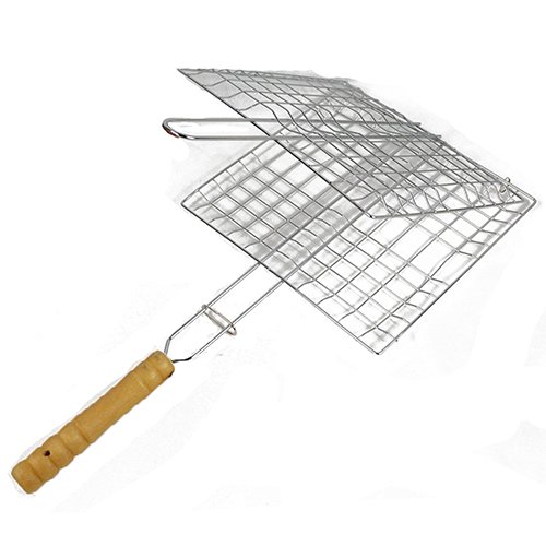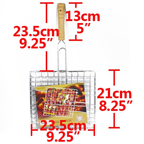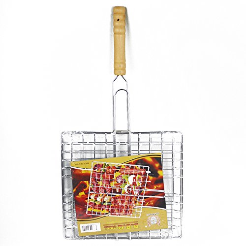 Non-stick BBQ Grilling Basket with Bamboo Handle New 17.25" X 9.25"